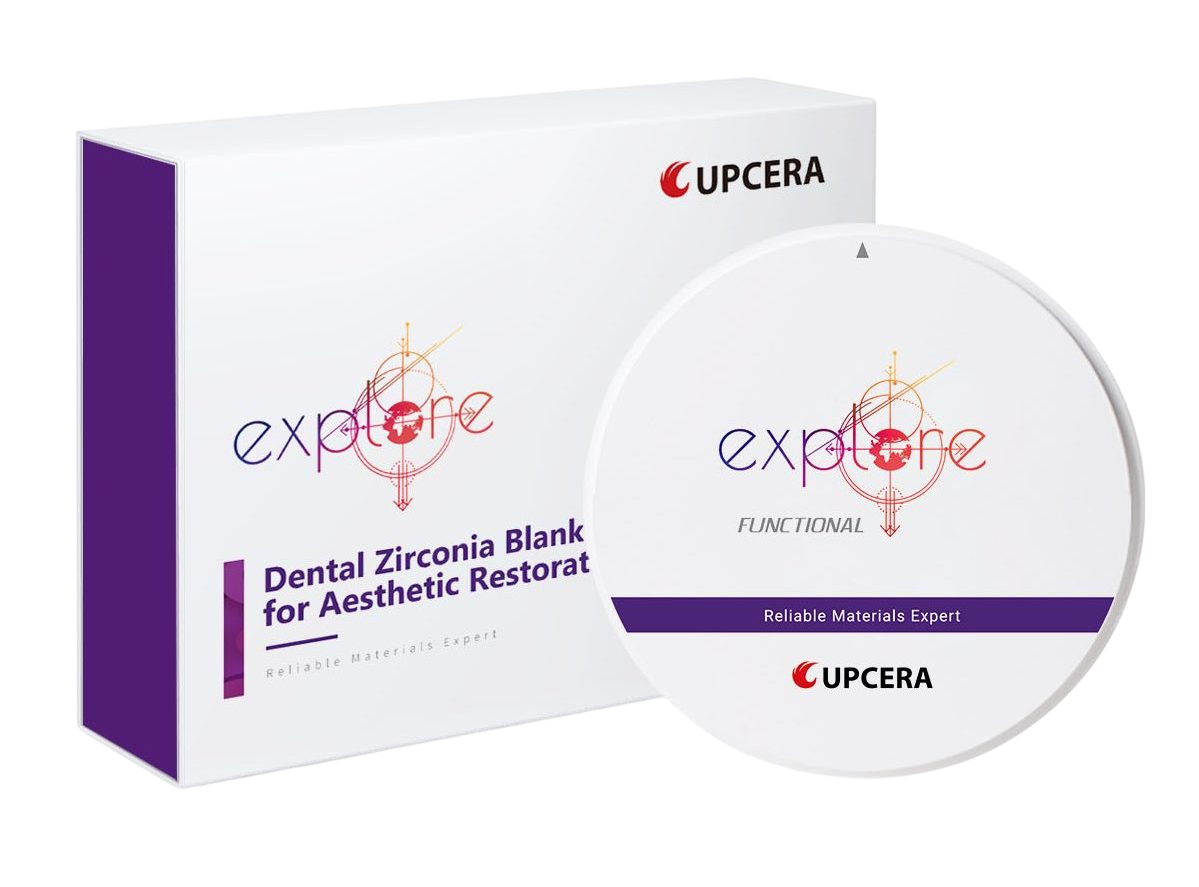 UPCERA Explore Functional is a 5 layers dental multilayer zirconium oxide (3Y-TZP-4Y-PSZ) with gradient translucency, color and high translucency. Simply operation for dental technician, glazing.